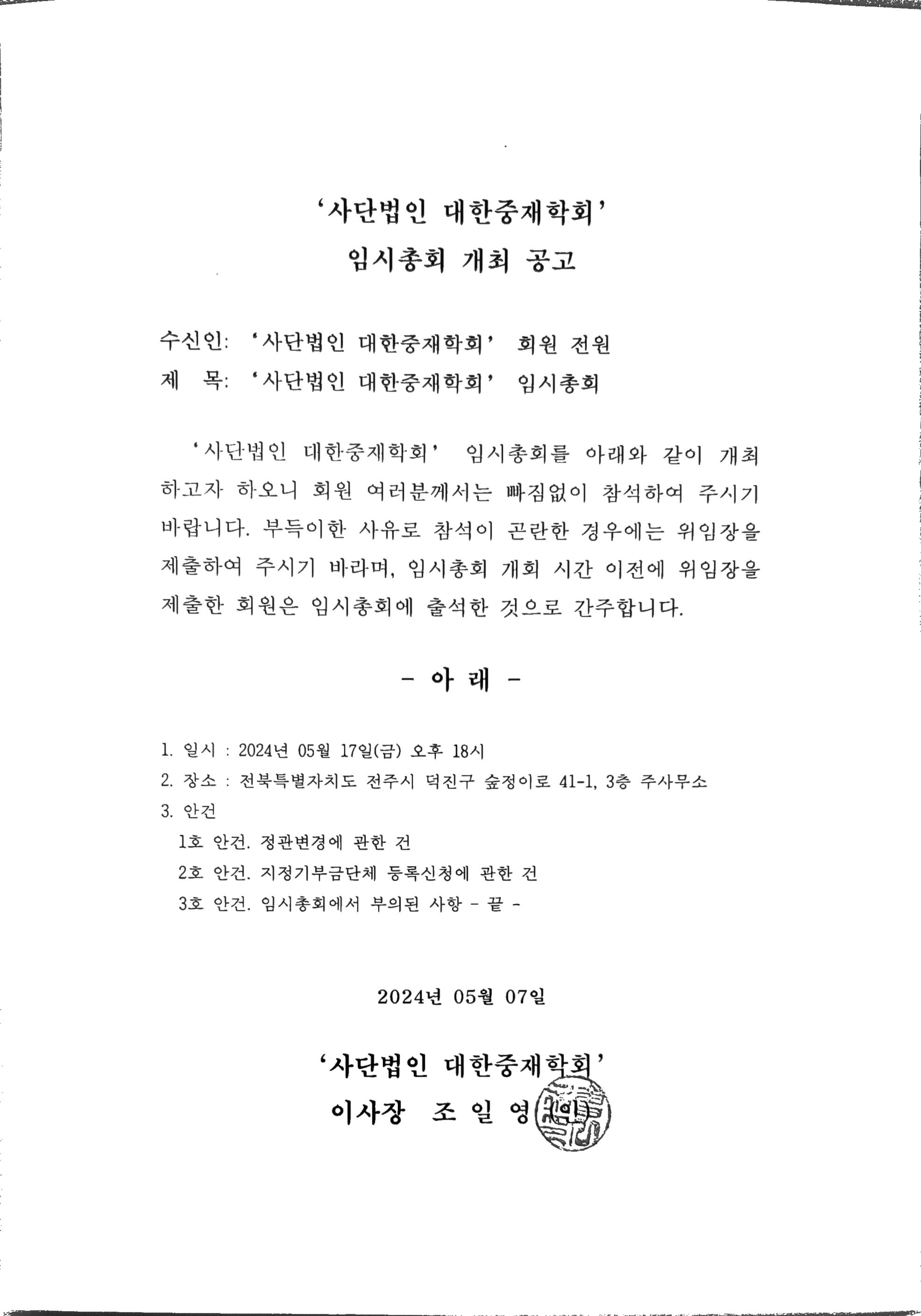 - 다음글 2025 사단법인 대한중재학회 임시총회 공고